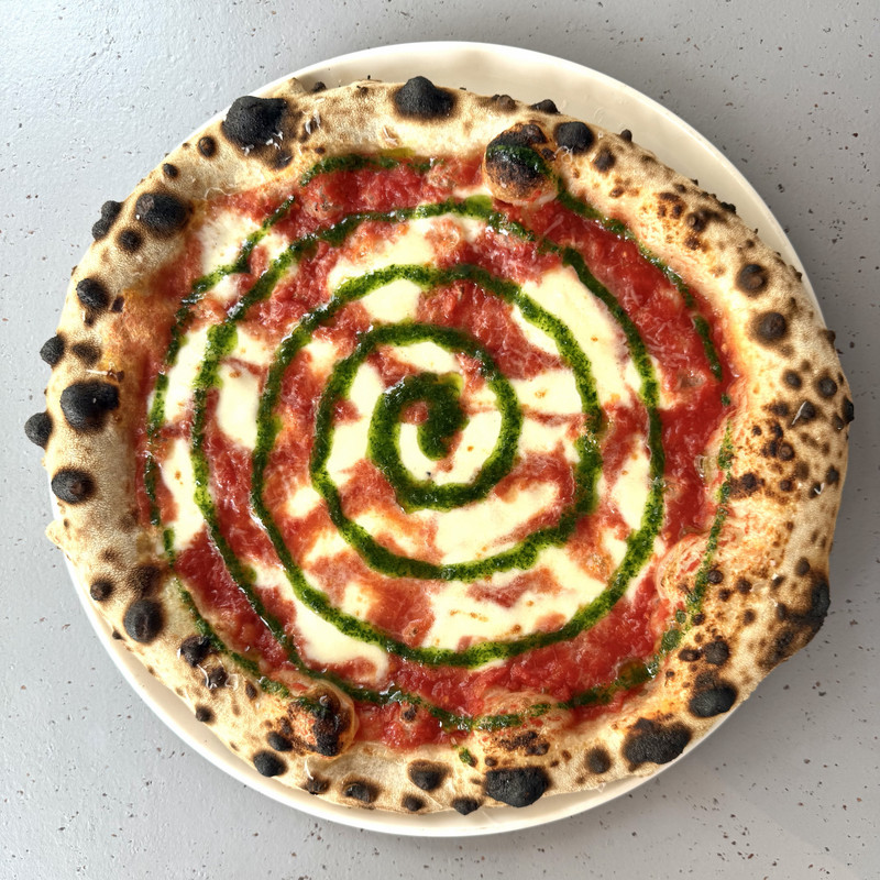 Green Margherita Tomato – Mozzarella – creamy basil pesto – Parmesan |
