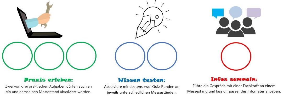 Die vollständige Ausarbeitung des Schwerpunktes würde den Rahmen dieses Formulars sprengen. Deshalb erhalten nur die Unternehmen, welche an einem Schwerpunkt interessiert sind ein zweites, deutlich kürzeres Formular. Trotzdem müssen auch diese Firmen Angaben zu einem „normalen“ Messestand machen, da eine Ablehnung des Praxisschwerpunkts nicht automatisch eine Absage für die Teilnahme an der Messe bedeutet.